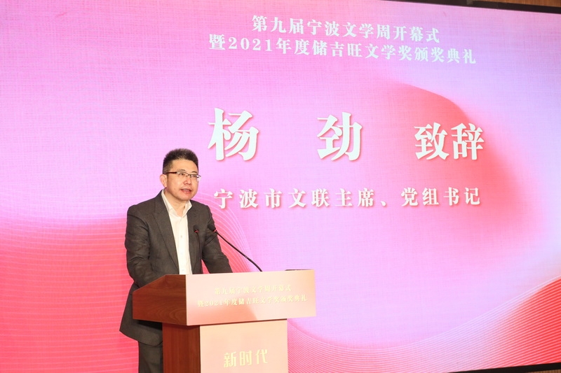 4月2日上午,因疫情延期了四个月的第九届宁波文学周在慈城正式揭幕。开幕式上举行了2021年度《文学港》●储吉旺文学奖颁奖典礼。