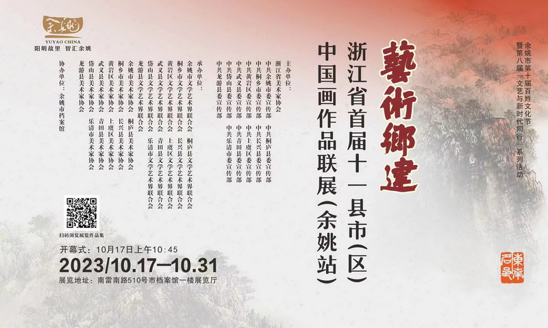 此次联展由浙江省美术家协会,桐庐、桐乡、长兴、黄岩、上虞、武义、青田、岱山、乐清、龙游和余姚十一县市(区)宣传部联合主办,十一县市(区)文联、美协联合承办,旨在通过中国传统绘画艺术,展现浙江省在八八战略下的新时代乡村风貌和文化底蕴,激发乡村振兴的内生精神动力,进一步夯实乡村文化根基,充分发挥文艺在新时代乡村振兴中的铸魂赋能功能。