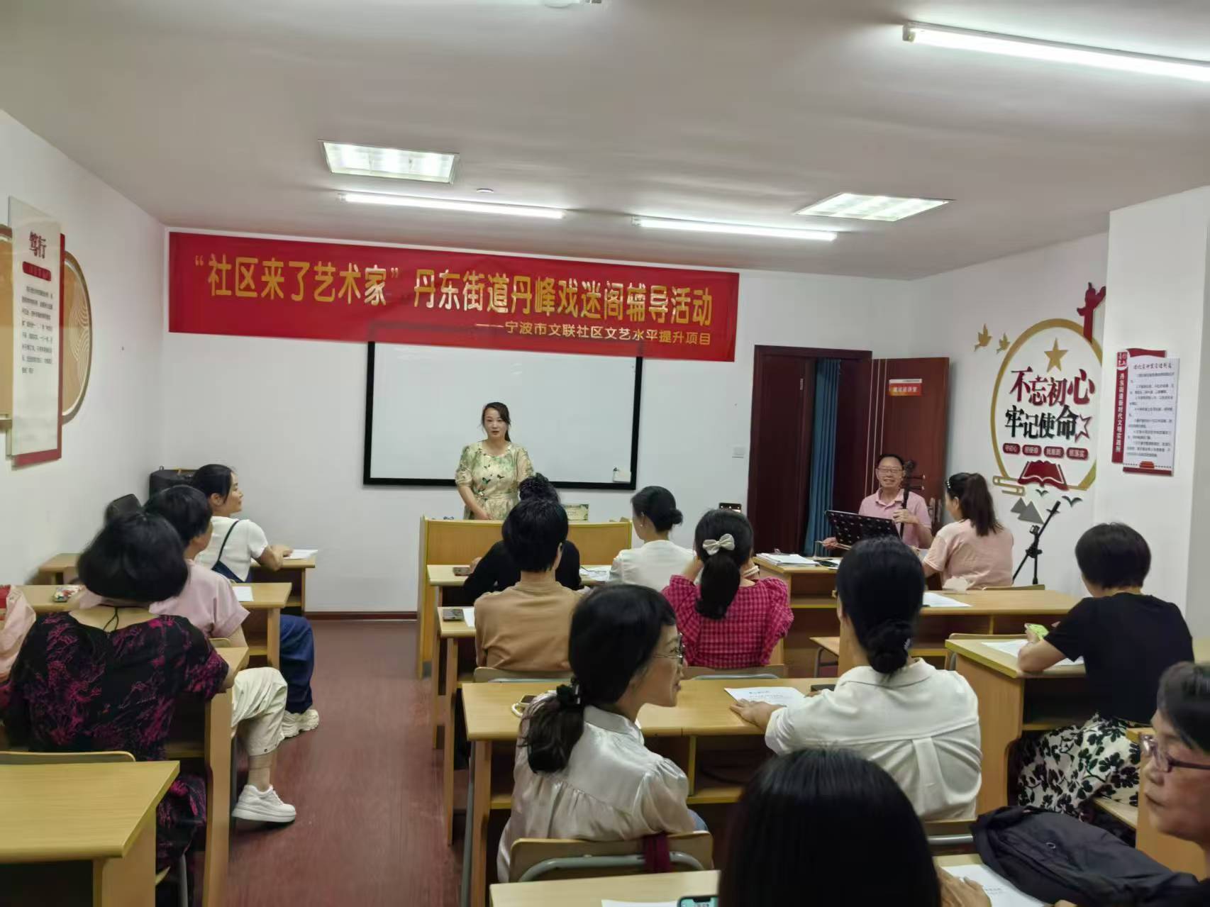为积极推进机关文化建设,丰富群众的精神文化生活,6月12日晚,2025年戏曲公益课堂在丹东街道新时代文明实践所开班。