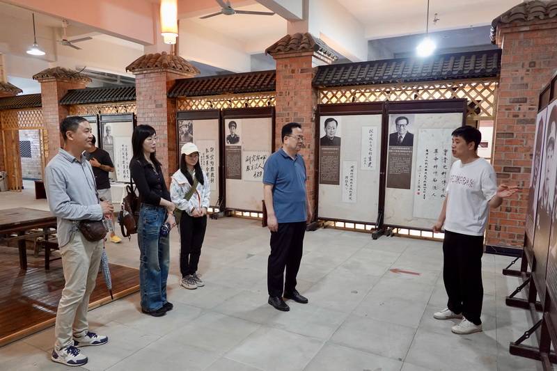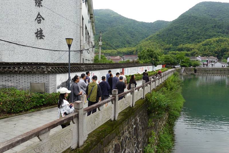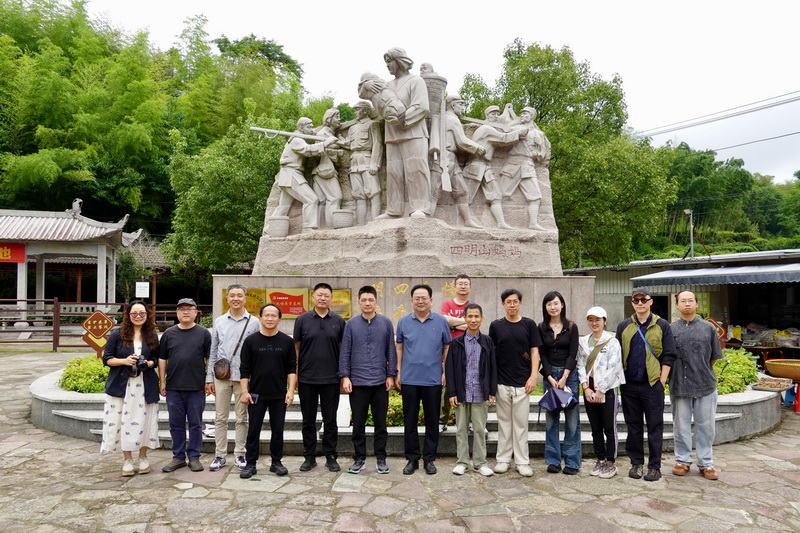 尽管梅雨季的连绵为现场挥毫带来不便,但艺术家们的热情不减。他们穿梭于流水潺潺的袁马湿地公园,感受生态韵律;驻足于庄严肃穆的浙东抗日根据地旧址群,聆听历史回响,体悟革命精神;身临烟雨迷蒙中更显秀美雄浑的裘岙狮子山,领略山村雨景的独特意境。采风团成员利用相机细致捕捉沿途的风景细节、建筑特色、人文瞬间,并不时交流观察心得与创作构思,为日后创作储备丰富的视觉素材。
