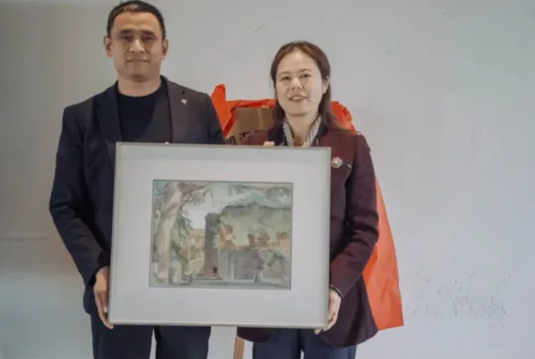 开幕式上,民盟市委会副主委、海曙区政协副主席胡金红代表市委会向深溪村捐赠了一批参展作品,这些捐赠作品将用于深溪村文化建设与文旅宣传,切实将艺术成果转化为乡村发展资源。