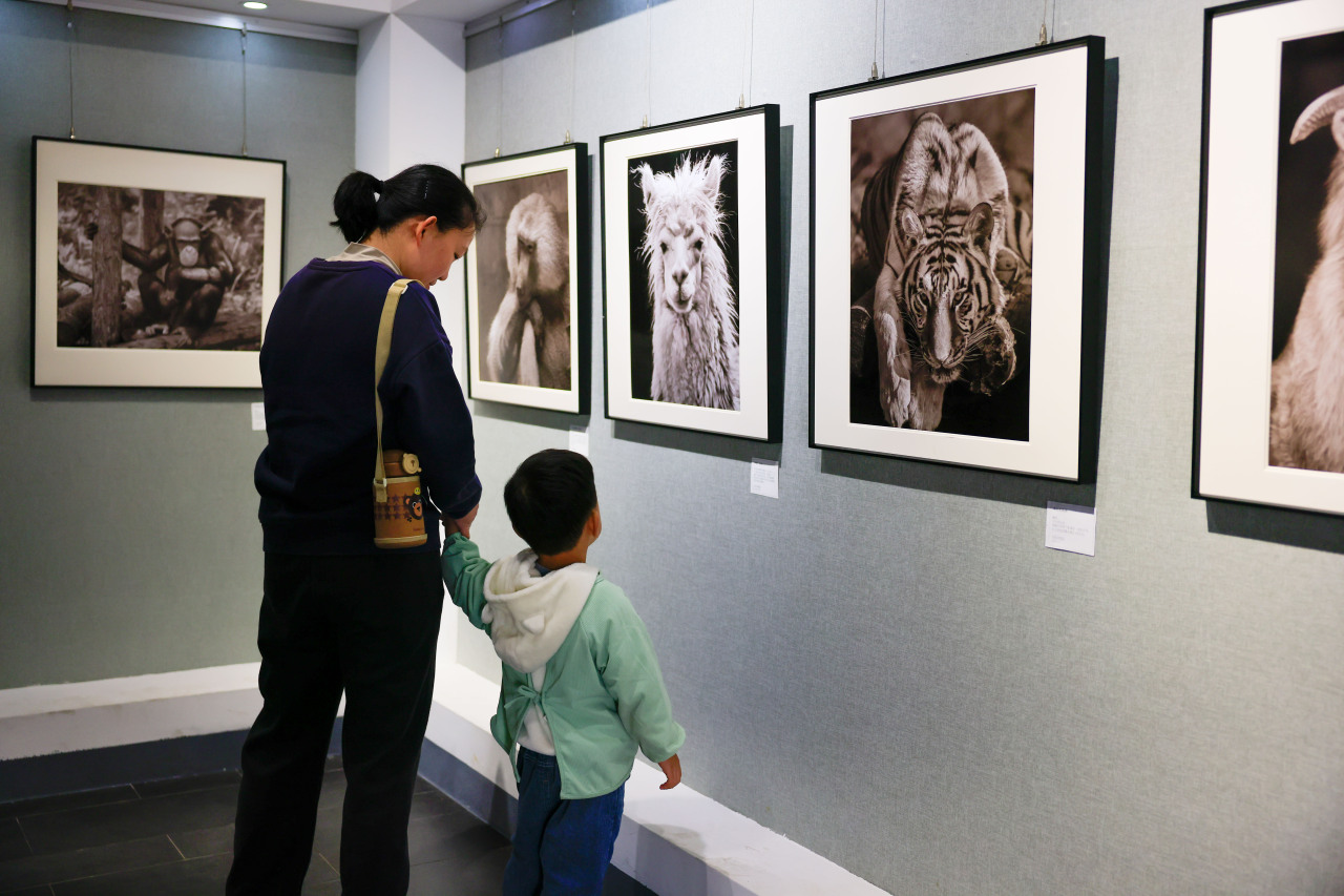 展览首日便吸引了众多市民与村民前来观展。“我常来半浦村寻古探幽,听说新展开展,特意带爸妈来感受艺术氛围。”家住海曙区的张女士一边搀扶着父母驻足观展,一边向记者分享感受。展厅内,不少村民静静凝视着作品,孩子们则围在志愿者身旁,认真聆听每幅照片背后的动物故事——黑白影像此刻成为连接乡村观众与生命思考的温情桥梁。