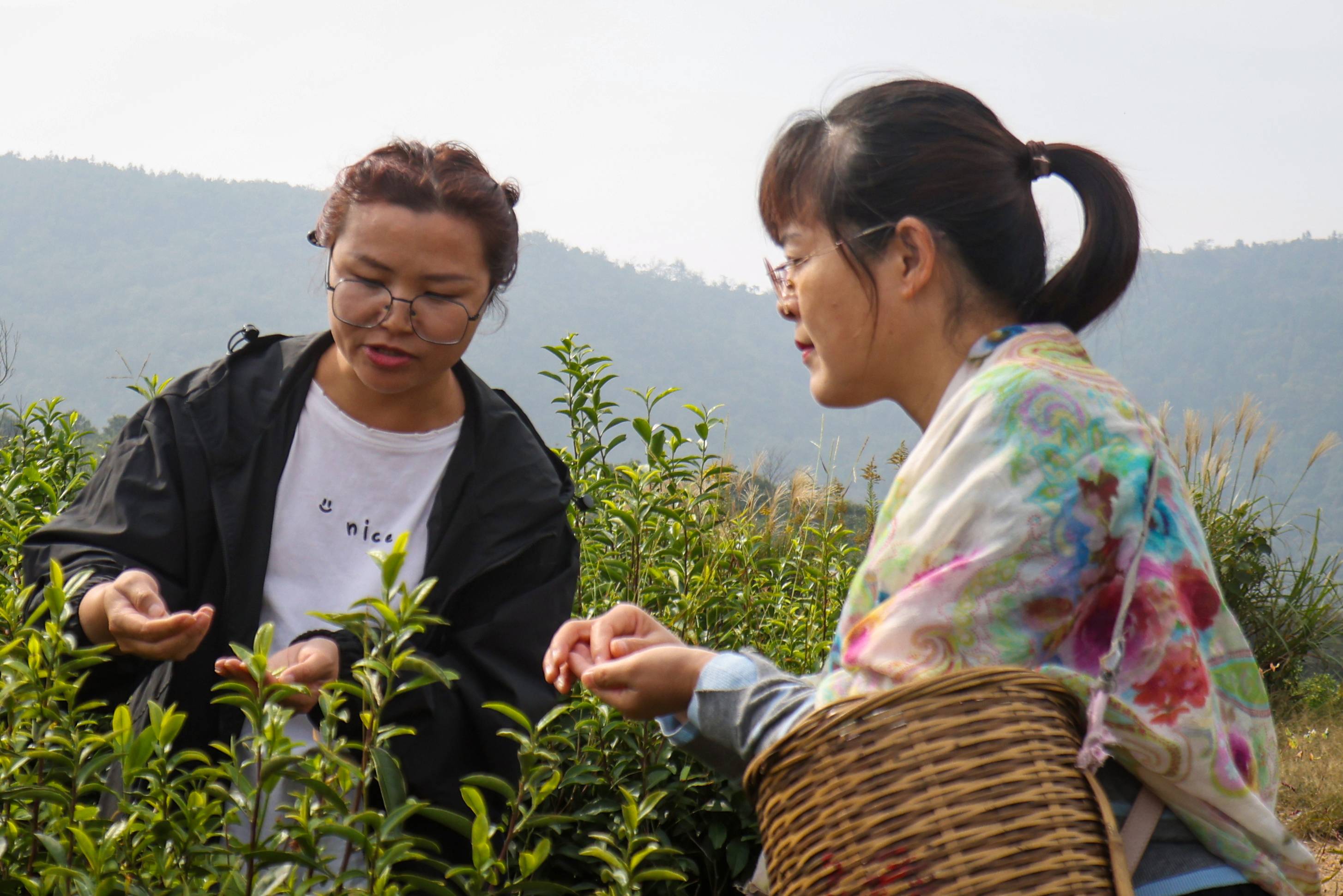 仪式后,作家们在酒店负责人徐依的带领下探访了梅峰茶园。海拔600多米的梅岭山峦叠翠,云雾缭绕,梯田式茶园如绿毯铺展。昼夜温差大、生态优良,使这里成为“宁波市最美茶园”,也是优质红茶的生产地。