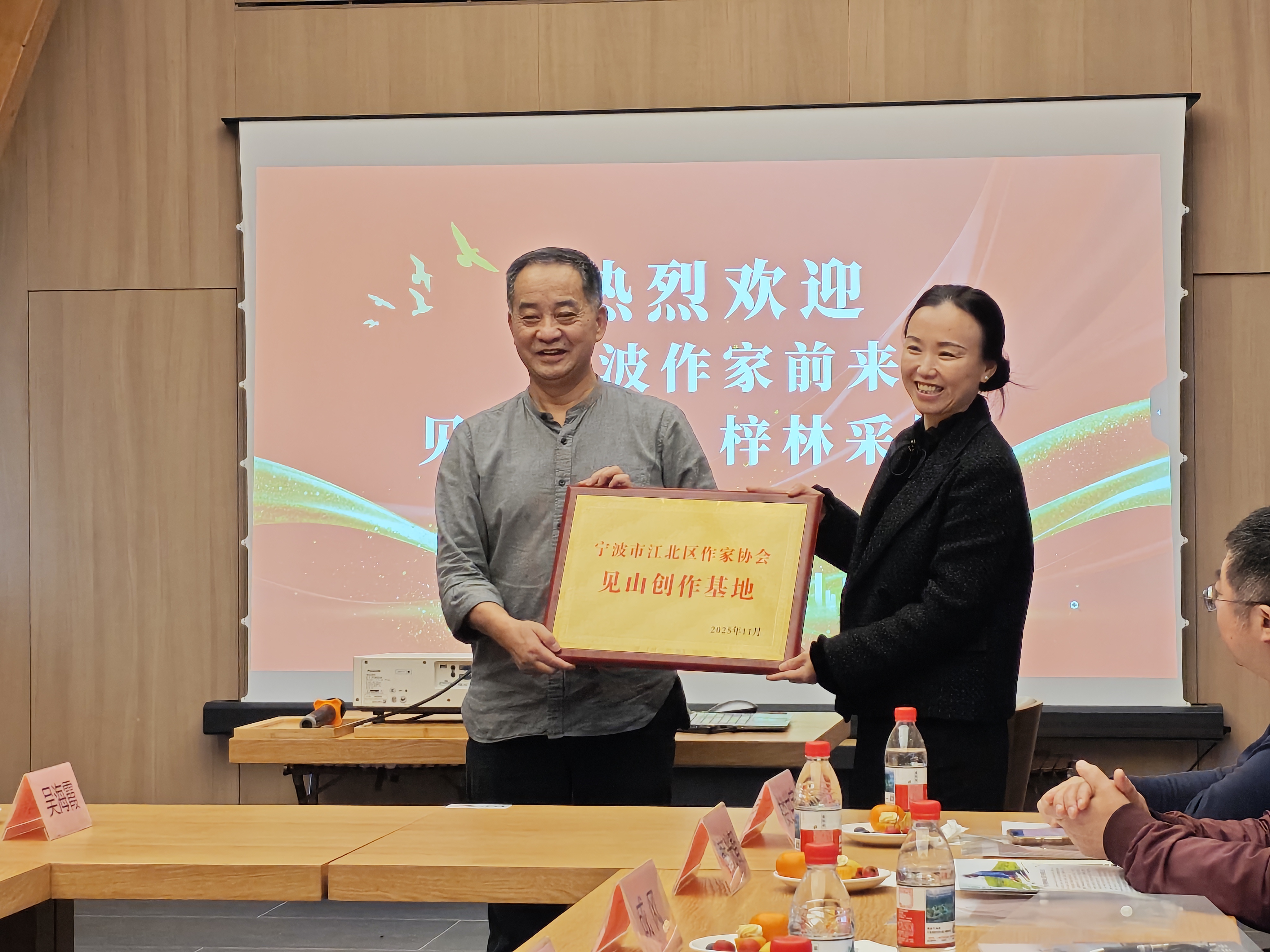 活动的重要环节是“江北区作家协会见山创作基地”授牌仪式。江北区作协将会员创作基地牌匾授予见山度假酒店,标志着这片融合茶香、农趣与湖光山色的土地,正式成为作家们扎根人民、书写时代的文学驿站。作协会员还捐赠了一批精选书籍,以文学滋养这片土地。