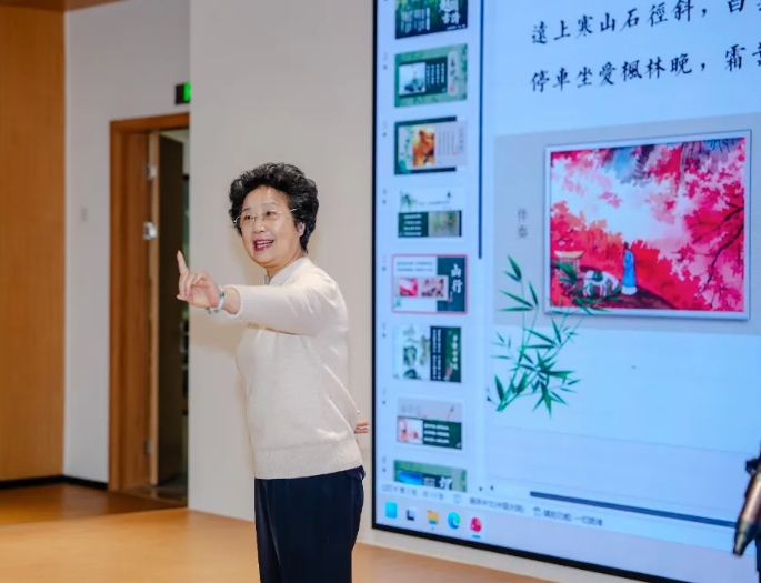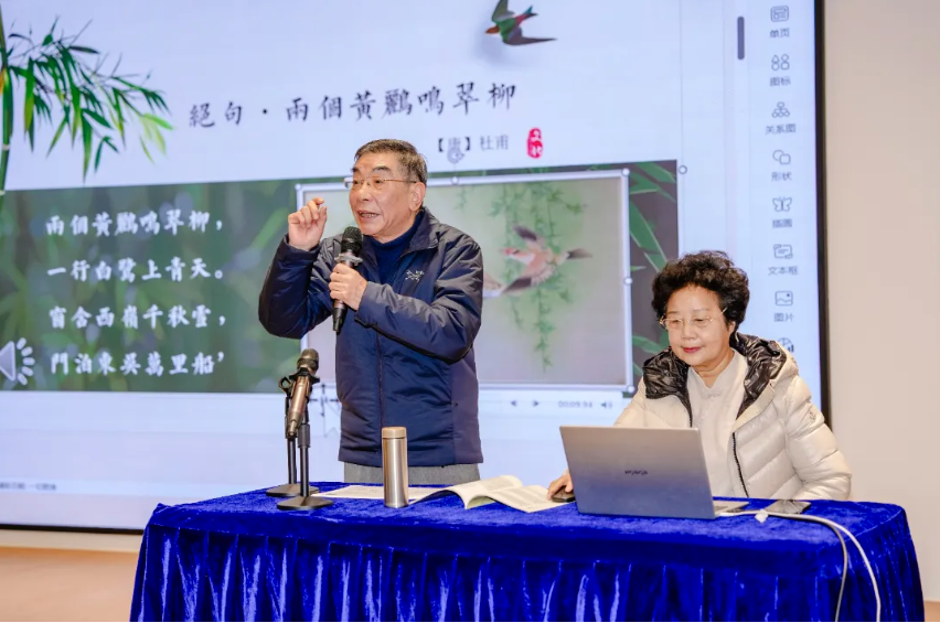 讲座中,竺小招围绕“越剧竺派艺术与越韵古诗鉴赏”,深入浅出地讲解了竺派艺术的起源、特色与传承脉络;吴尧东亲自示范,用醇厚典雅、韵味独特的竺派唱腔,演绎了多首精心谱曲的古典诗词。当千年古诗遇上百年越韵,文字的情致与唱腔的韵律水乳交融,赋予了全新的生命与情感深度。