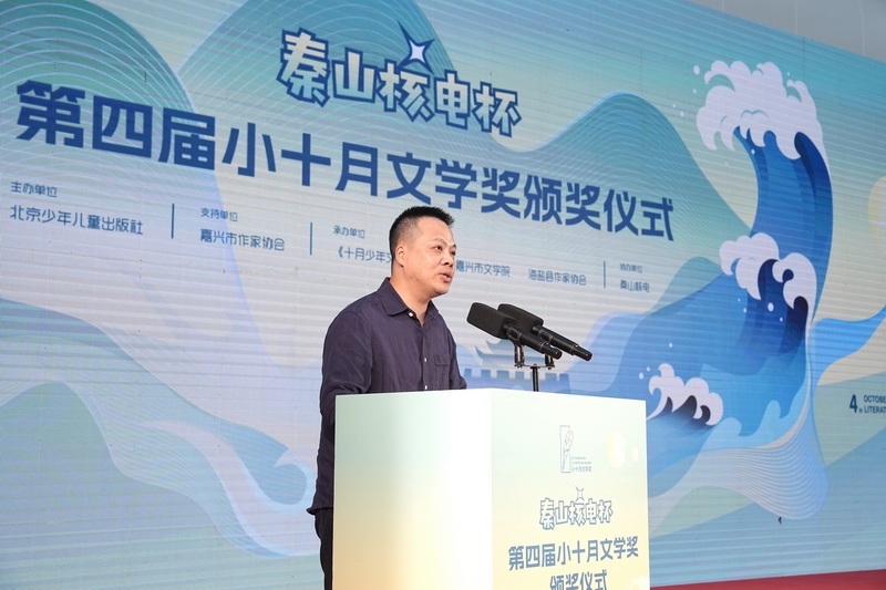 颁奖仪式最后,北京大学文学讲习所所长、《十月少年文学》主编、著名作家曹文轩现场感谢了“秦山核电杯”第四届小十月文学奖全体同仁的辛勤劳作,特别感谢秦山核电的支持,并在主题发言中提到了知识与经验的关系,“你大脑中有多少知识,眼前就有多少财富。是知识使你获得了感应世界的能力,是知识让你看到了经验的价值连城。我们也需要重新认识:知识也是经验——他人的经验。读一本书就是从他人那里接受一笔财富,读一百本书,就等于是从他人手中接受了一百笔财富。一个愿意在创作道路上一路走下去,并一路风景的作家,当永远记住:知识是你一往无前的核动力。”