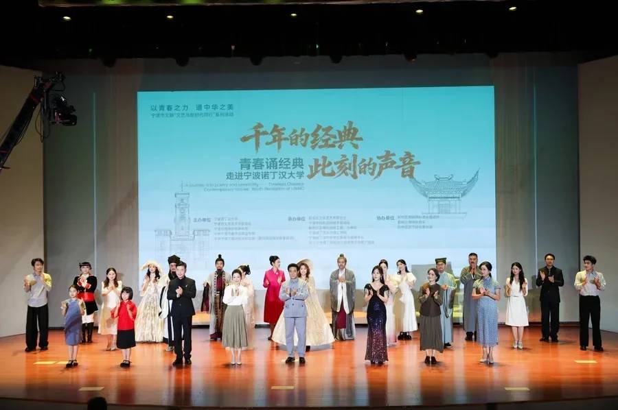 近日,“千年的经典 此刻的声音”青春诵经典品牌活动于宁波诺丁汉大学举行。现场有来自20多个国家和地区的600余名青年学生共襄盛举,参与这场跨越千年、贯通中外的文化盛宴,近50万人同步在线收看。著名表演艺术家、浙江省朗诵协会会长刘忠虎与我市朗诵艺术家、鄞州青年学子携手登台,依次呈现《诗经》《论语》《百年孤独》《巴尔巴娜》等中外经典名篇。诵读之声情感真挚,不仅激活了观众的文化基因,更激发了文脉传承的热潮。