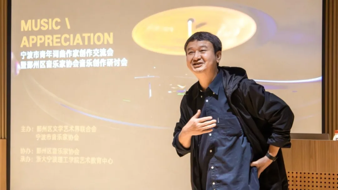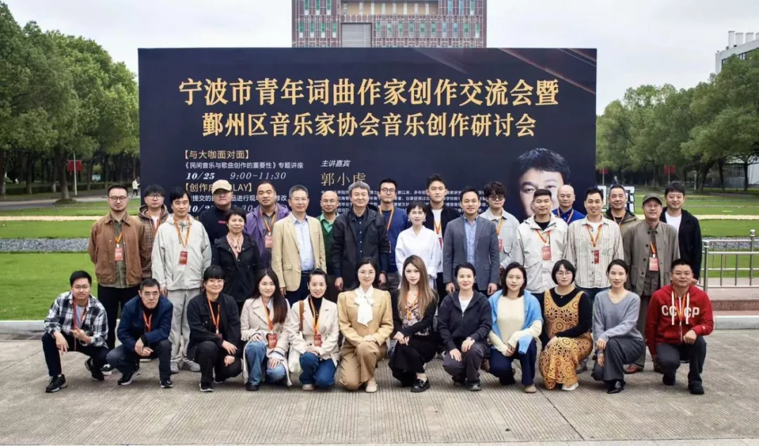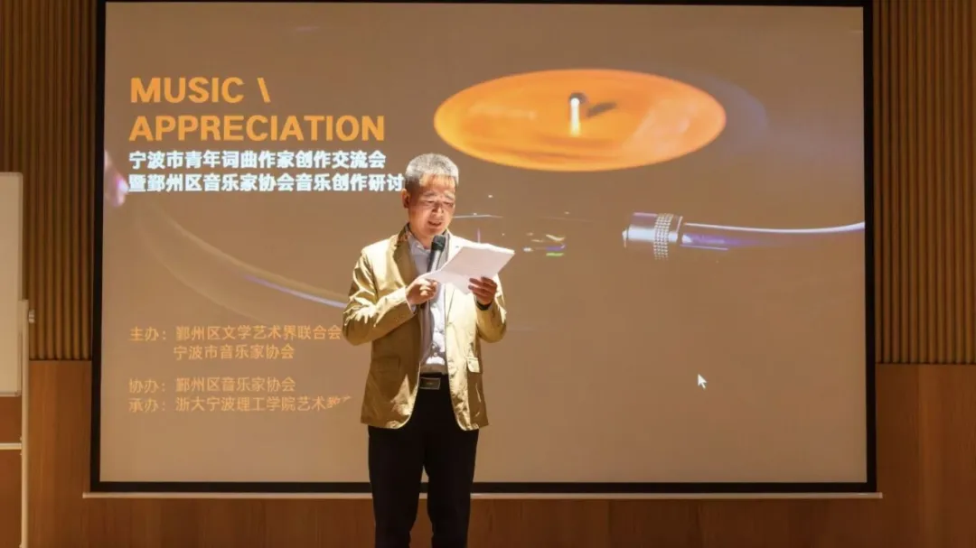 10月25日,由鄞州区文联和宁波市音乐家协会共同主办,鄞州区音乐家协会承办的宁波市青年词曲作家创作交流会暨鄞州区音乐家协会音乐创作研讨会在浙大宁波理工学院顺利举行。著名作曲家、中央音乐学院博士生导师郭小虎,鄞州区文联党组书记、主席胡冬平,鄞州区文联党组成员、副主席杨晓丽,宁波市音乐家协会副主席范翱鹰,宁波市音乐家协会副主席、鄞州区音乐家协会主席郭晓伟,以及来自各区县市的30余名词曲作者共同参与了创作研讨。本次活动旨在提升宁波本土音乐人才和音乐作品的原创能力,大力挖掘区域文化资源与音乐艺术的深度链接,积极搭建青年音乐人才的成长和推介平台。
