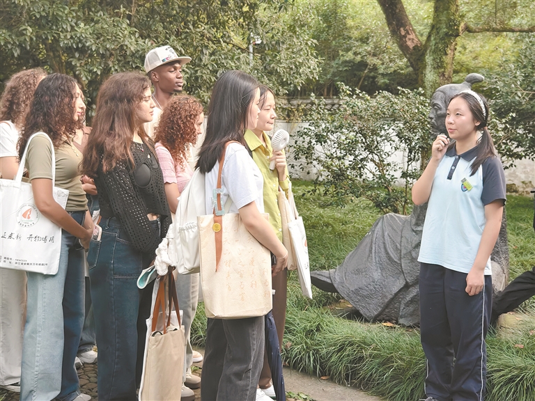 少年使者,文化自信的世界传递。系列活动中最动人的场景之一,发生在黄宗羲著书立说的龙虎草堂。在一场文化交流活动中,来自梨洲中学的20名学生,以流利的英语向来自世界各地的留学生生动讲述黄宗羲的故事。这一幕标志着,黄宗羲对这群少年而言,已从书本上的知识内化为愿意主动对外传播的文化符号。这是中华优秀传统文化在青少年心中生根发芽、并渴望与世界分享的鲜活例证。留学生们则通过这扇窗口,认识并了解了这位中国思想家,触摸到有温度的地方文脉与文化情怀。这场跨越语言、国界的文化传递在年轻心灵间搭建起理解与共鸣的桥梁,使传统文化在世界语境中焕发出时代光彩。