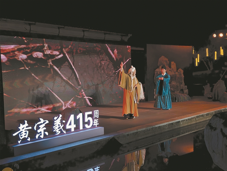 沉浸式戏剧与先贤思想碰撞。在纪念黄宗羲诞辰415周年的主题文艺活动中,一场名为《听·见 黄宗羲》的原创音乐戏剧在龙虎草堂上演,吸引了近千人现场观看。这场演出打破了传统的舞台界限,充分利用自然与人文环境,融合戏剧、音乐、朗读与舞蹈,引领观众“穿越”时空,身临其境地感受黄宗羲问道、悟道历程中的内心冲突与深沉情怀。哲学思想由此从被仰视的静态文本,转化为可被观看、聆听、体验的感性存在,让观众得以在情感共鸣中,直观地“触摸”到那个风雷激荡的时代与思想家抉择的艰难,实现了文化传播从“告知”到“感受”的深刻转变。