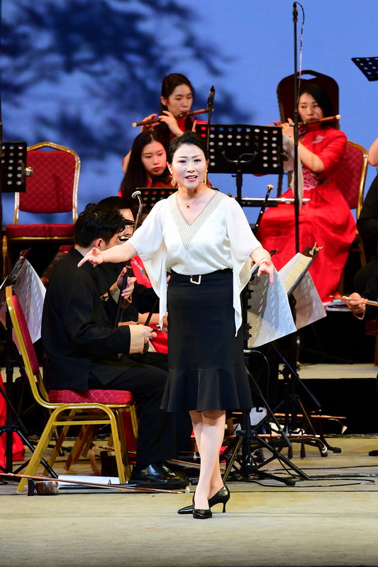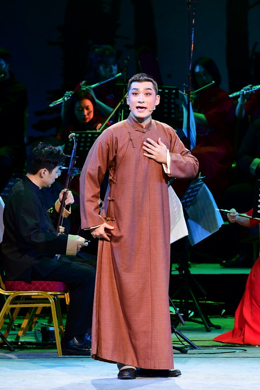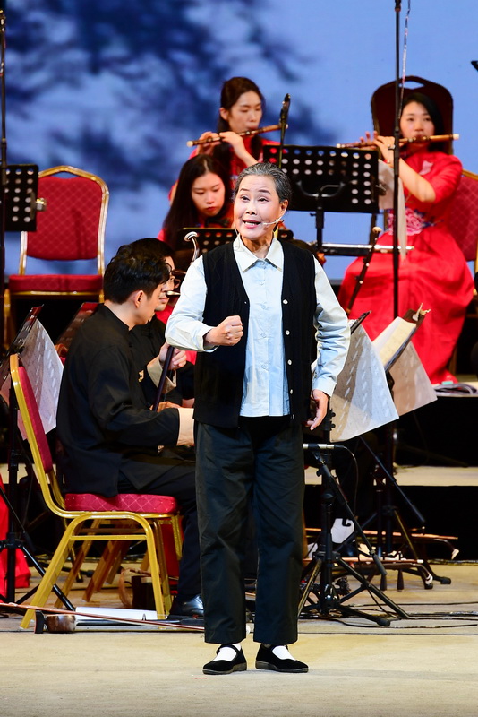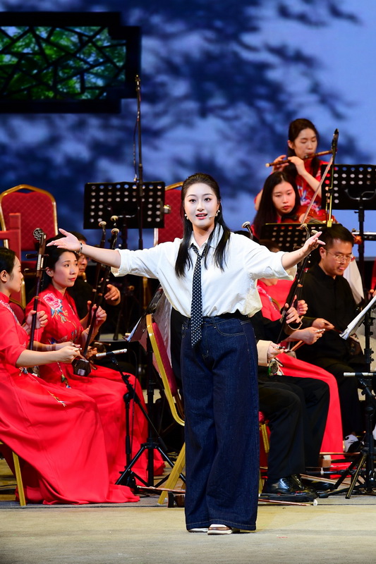 本次红色戏曲演唱会的亮点之一是启用民族管弦乐大乐队全程现场伴奏,让传统唱腔与民乐韵律碰撞出别样火花。演唱会序曲《甬上戏韵》是青年作曲董贤宇特别为本次演唱会量身打造的开场曲。乐曲将甬剧、姚剧、宁海平调的音乐元素融入民族管弦乐,一开场便以恢弘又细腻的旋律,勾勒出宁波地方戏剧的千年文脉,为整场演出奠定“红色为魂、乡音为根”的基调。由宁波市甬剧团、市小百花越剧团、余姚市姚剧保护传承中心乐队联合演绎的民族管弦乐《延河随想》以悠扬旋律串联起红色记忆,让观众在音乐中感受时代脉搏。