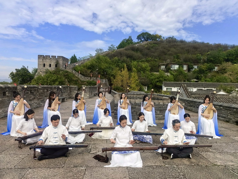 当日上午,古城临海暖阳正好。演奏家们携琵琶、古琴穿梭于宏伟的江南长城之上,指尖流淌的《阳春白雪》琵琶声与城墙斑驳的肌理相映;秀丽的东湖畔,《关山月》古琴曲随碧波荡漾,引得游人流连驻足;千年商脉延续的紫阳街,丝弦之音与青砖黛瓦、老字号商铺交融,演奏家们在此拍摄的民乐视频,成为古城初冬里最具诗意的风景,让传统民乐在历史场景中焕发新生。
