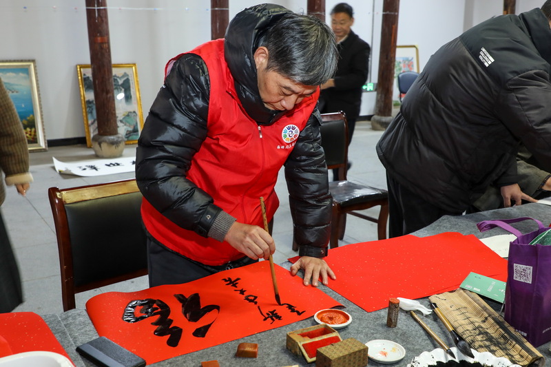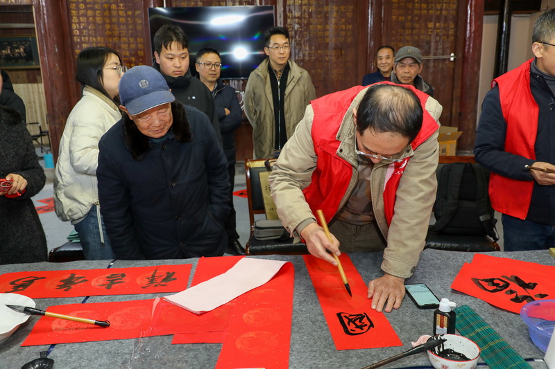 历时近两个多小时的笔会,书画家们共创作了近二十幅书画作品。这些作品或赠予村委留存,或现场赠与村民。现场还为即将到来的新年写了七十余幅福字及对联,增添了浓厚的文化气息。“这样的活动把艺术送到家门口,拿到了这么好的作品我感到非常荣幸。”拿到心仪作品的村民满脸喜悦。